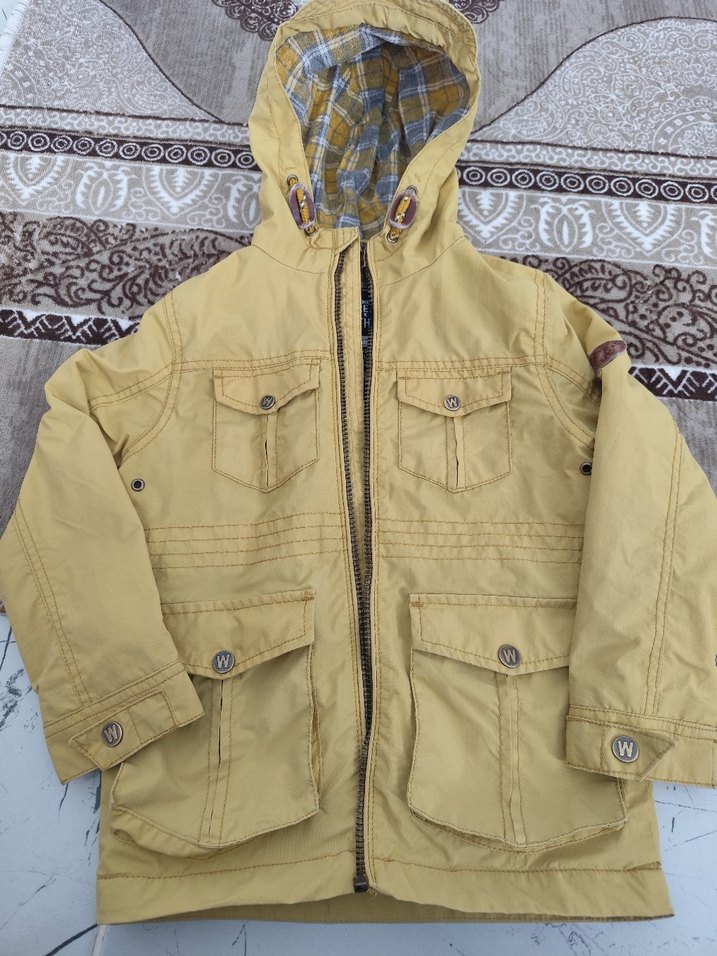 Sarı renkli, kapüşonlu, fermuarlı ve düğmeli ceplere sahip erkek çocuk montudur. Rahat kesimi ve yumuşak iç astarıyla günlük kullanıma uygundur.