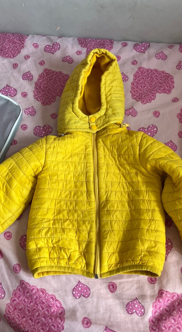 Sarı renkli, kapüşonlu ve fermuarlı erkek çocuk montu. Yumuşak, sıcak kumaştan olup renkli ve sokak stiline uygun bir tasarıma sahiptir.
