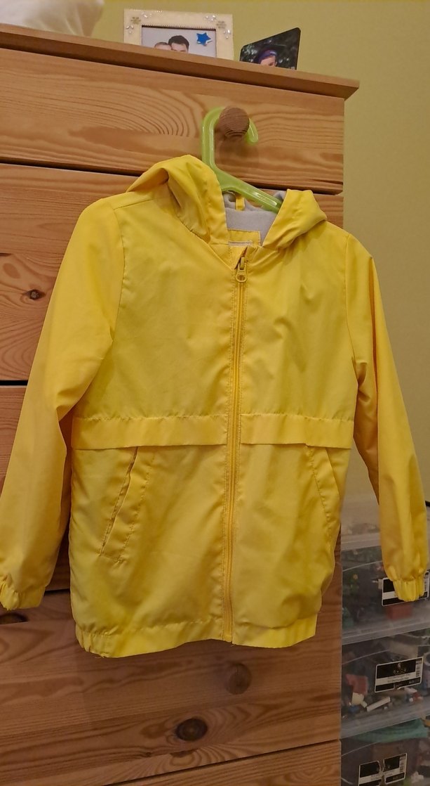 Parlak sarı renkte, fermuarlı ve notalı yaka detaylı erkek çocuk yağmurluğu. Bol kesim, yumuşak ve sıcak kumaştan, cep ve lastik manşetlidir. ☔