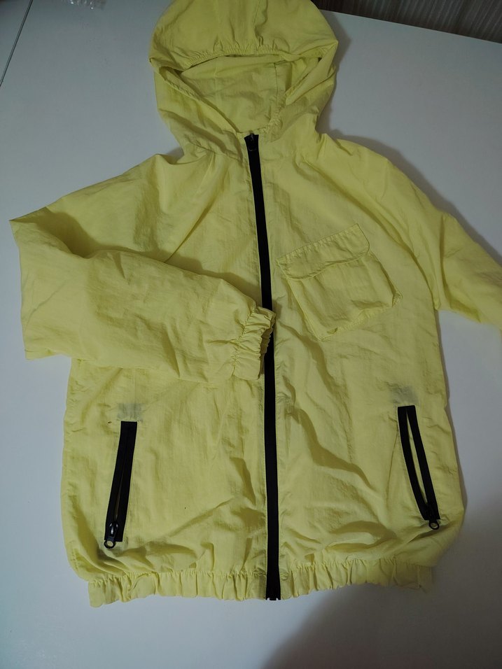 Parlak sarı sentetik kumaştan kapüşonlu erkek yağmurluk, fermuarlı cepler ve bol kesim uzun kollu tasarıma sahiptir. Günlük kullanıma uygundur. ️