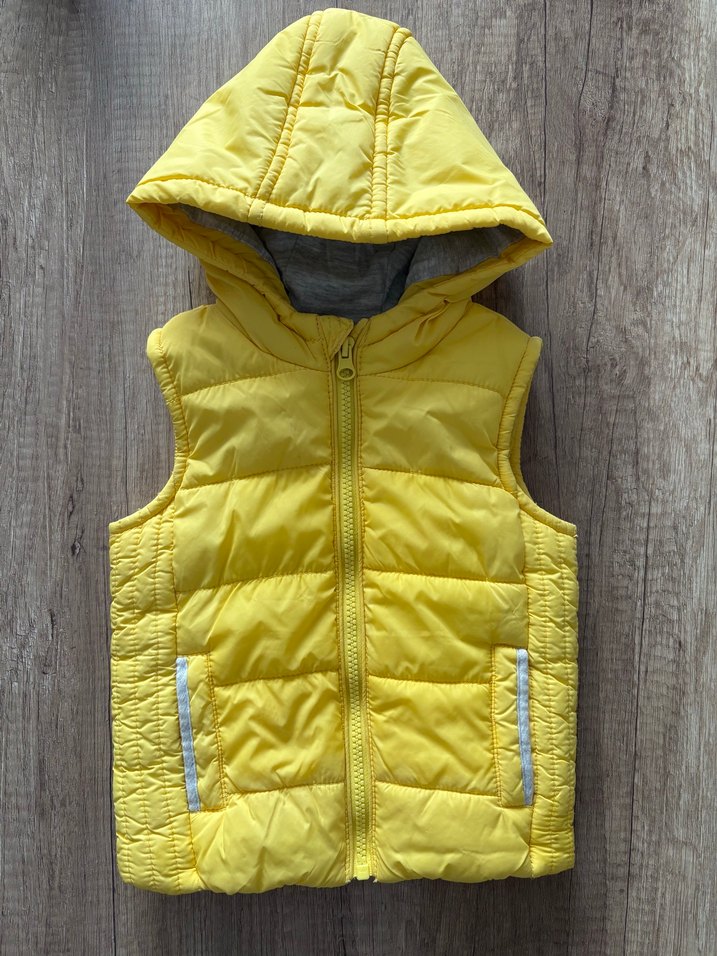 Sarı kapüşonlu, fermuarlı ve kolsuz erkek çocuk yeleği, dar kesim ve yakalı tasarımla sokak stili için uygun. Resimde belirttiğim hafif bir bellimoşmayan lekeai mevcut çıkarmı bilmiyorum