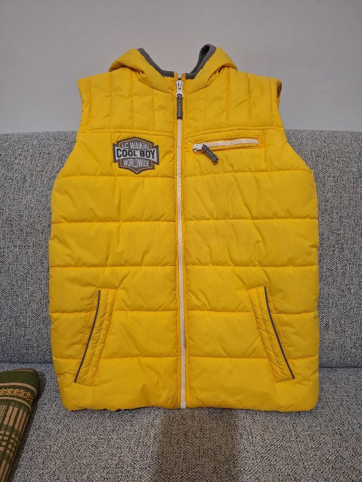 Sarı Kapüşonlu Erkek Çocuk Yeleği