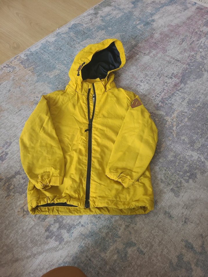 Sarı Kapüşonlu Fermuarlı Erkek Çocuk içi polar yagmurluk