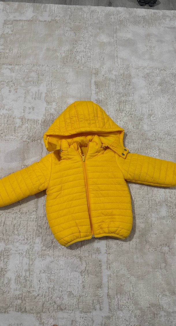 Sarı renkli, kapüşonlu ve fermuarlı erkek çocuk montu. Düz ve renkli tasarımıyla sokak stiline uygundur. Rahat ve sıcak dokudadır.