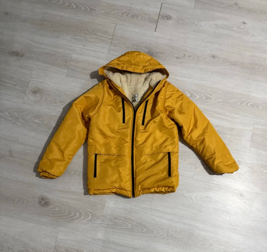 Sarı, kapüşonlu ve fermuarlı bu erkek çocuk montu, yumuşak ve sıcak astara sahip, parlak ve sade streetwear tarzında bir modeldir. 12 Yaş | Hiç Giyilmedi İade Kabul Edilmez ❌
