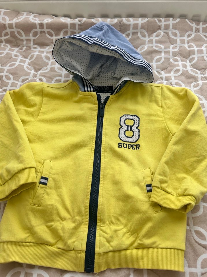 Sarı kapüşonlu fermuarlı, fitted kesim uzun kollu sweatshirt. Mavi detaylı kapüşon ve ceplerde çizgili süsleme bulunur. Önünde '8 SUPER' baskısı vardır.