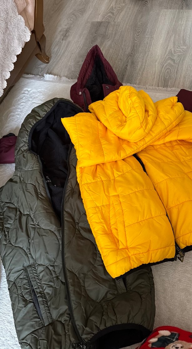 Sarı kapüşonlu, fermuarlı kadın kışlık yelek. İnce kesimli, kolsuz ve midi boyda, yumuşak ve sıcak kumaştan yapılmıştır. Rahat sokak stili için uygundur.