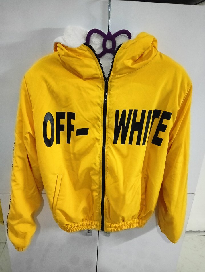 Renkli sarı ceket, kapüşonlu ve uzun kollu tasarımıyla rahat bir görünüm sunar. Ön fermuarlı ve baskılı detaylara sahiptir, günlük dış mekan kullanımı için uygundur.