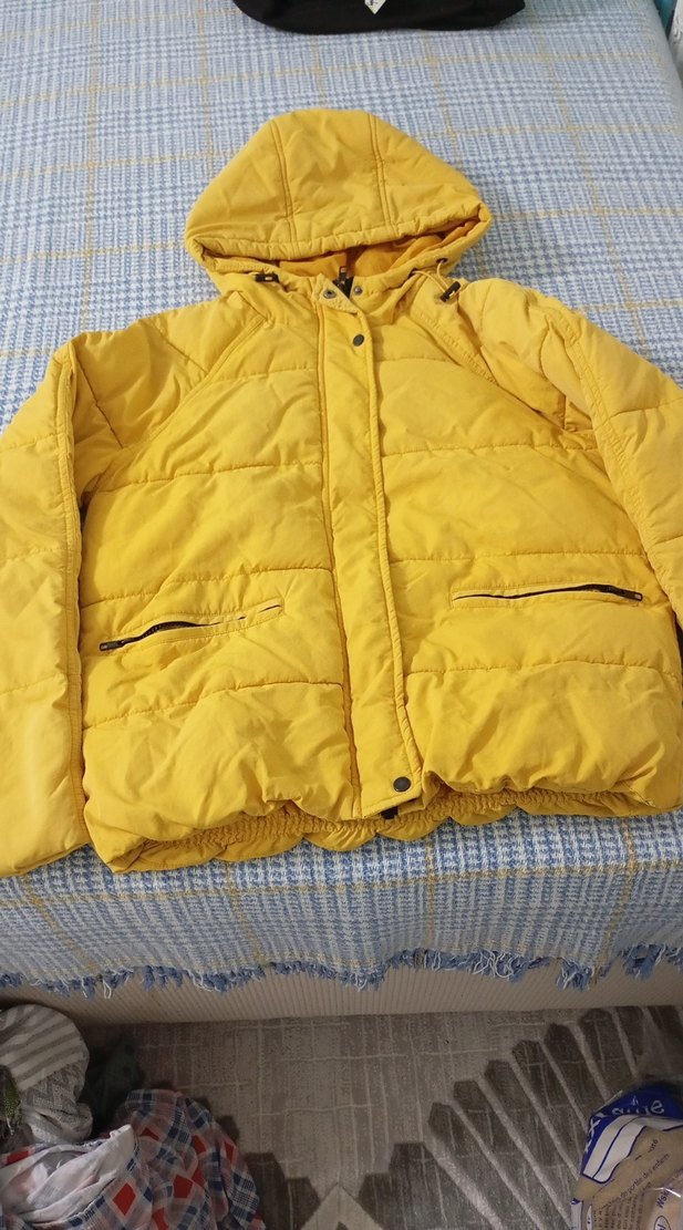 Sarı Kapüşonlu Kadın Kışlık Mont