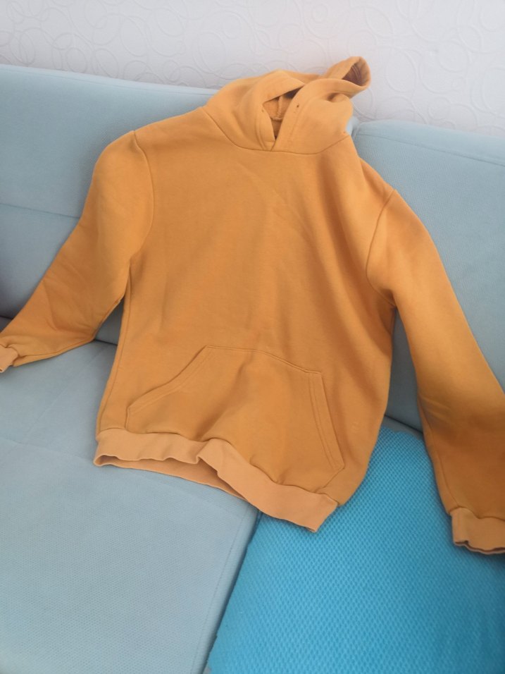 Sarı kapüşonlu sweatshirt, gevşek kesim ve uzun kollu, yumuşak ve sıcak kumaştan. Günlük kullanım için desen siz, rahat bir tasarım sunar.