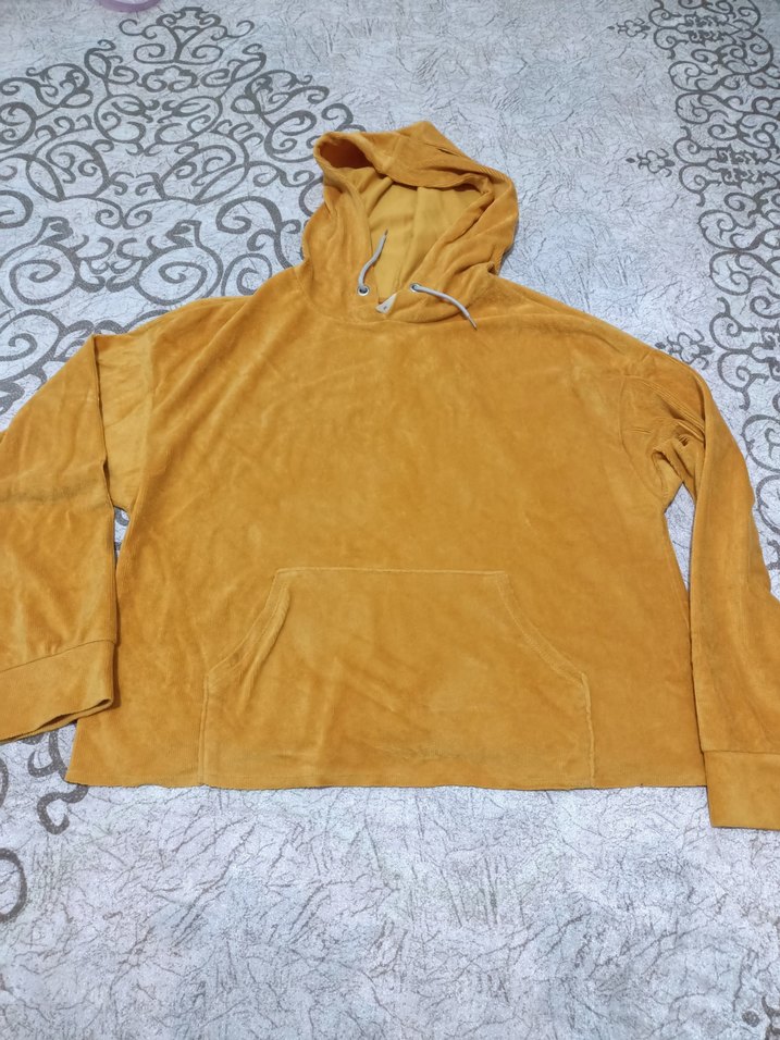 Hardar sarısı kapüşonlu sweatshirt, uzun kollu ve bol kesimdir. Yumuşak ve sıcak kadife kumaştan üretilmiştir.M ve L giyenede dökümlü olur, duruşu güzeldir.