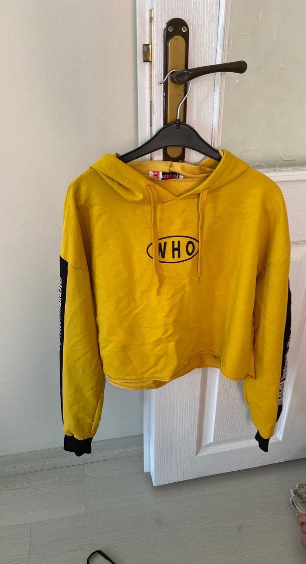 Sarı uzun kollu, bol kesim ve yuvarlak yakalı sweatshirt. Baskılı desen ve cırt cırt detaylı, yumuşak ve sıcak kumaştan üretilmiştir. ✨
