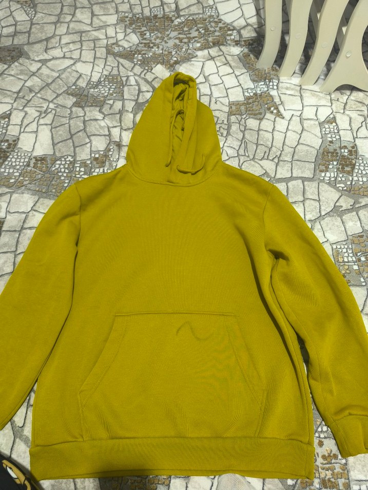 Sarı kapüşonlu kadın sweatshirt, uzun kollu ve bol kesimdir. Yumuşak kumaştan üretilmiş, fermuarlı ve parlak görünümlüdür.
