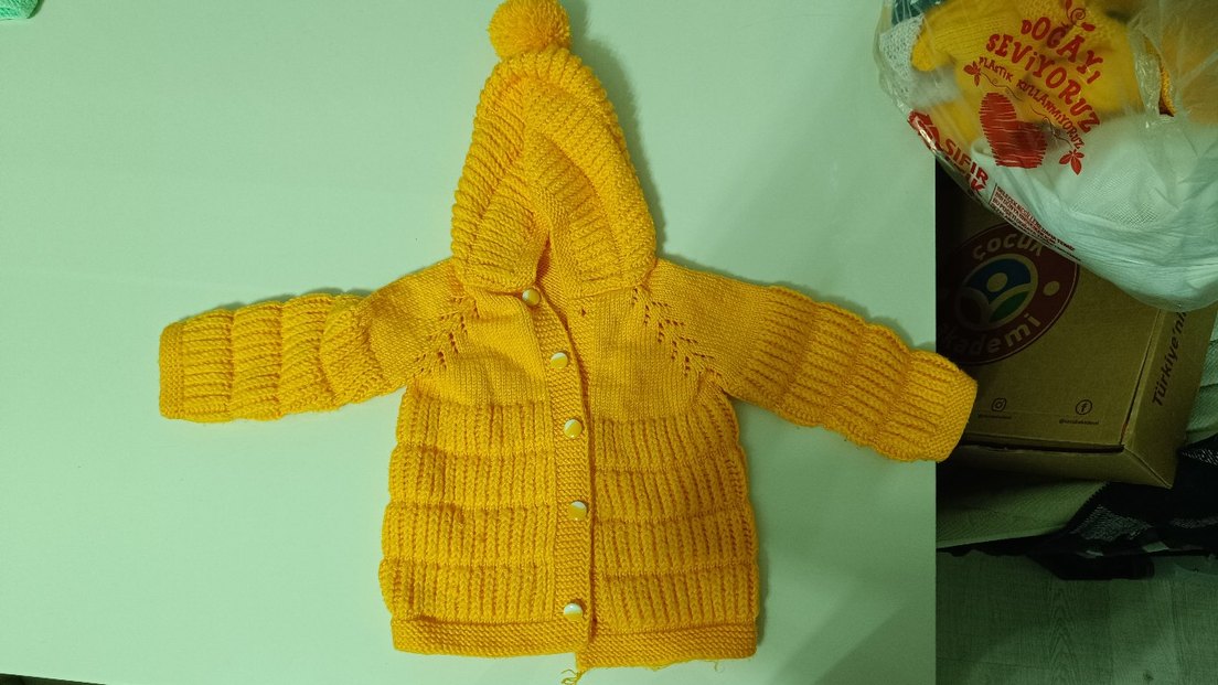 Sarı Kapüşonlu Kız Çocuk Örgü Hırka