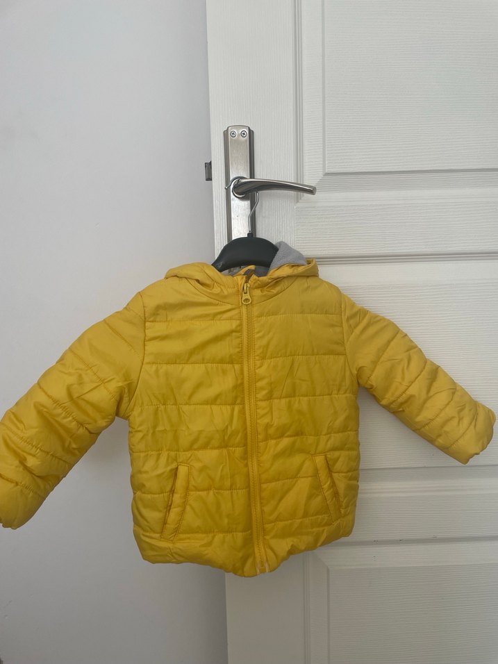 Bu sarı kapüşonlu erkek çocuk montu, yumuşak ve sıcak kumaştan yapılmıştır. Düz ve sokak tarzı, ön fermuar ve ceplere sahiptir. 18-24 ay tekliflere açığım