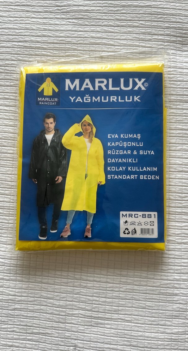 Sarı midi yağmurluk, kapüşonlu, uzun kollu ve standart kesimdir. Dayanıklı EVA kumaştan üretilmiş, rüzgar ve suya dayanıklıdır. kolay kullanım sağlar.