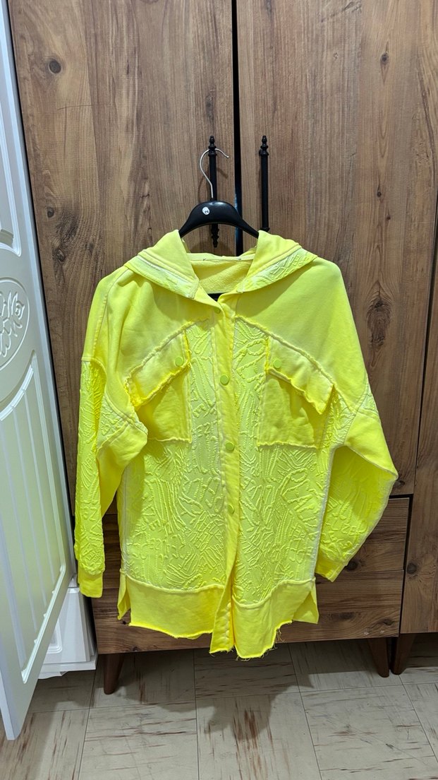 Sarı Kapüşonlu Mini Gömlek