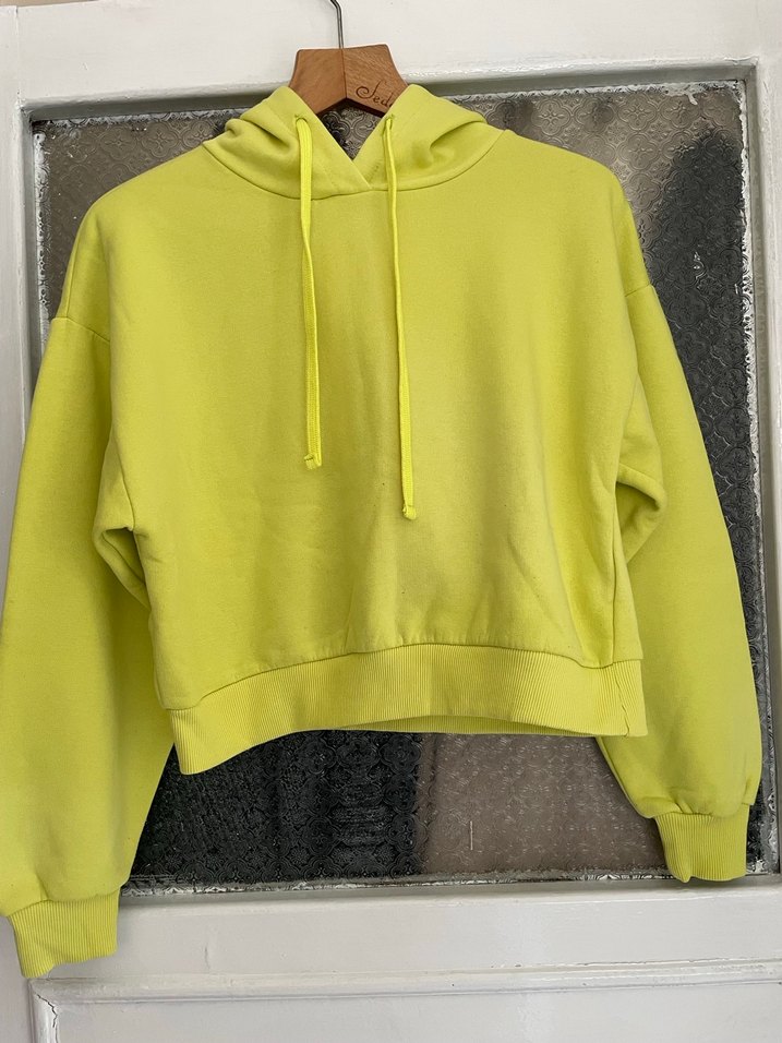 Sarı Kapüşonlu Salaş Mini Sweatshirt