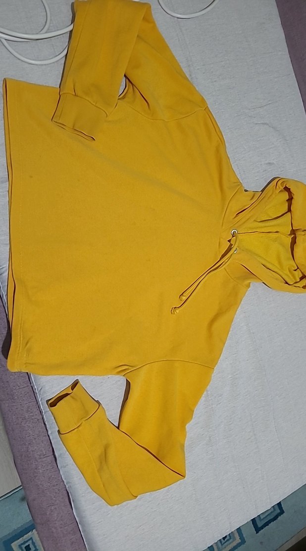 Salaş kesim, kapüşonlu, uzun kollu sarı sweatshirt. Normal midi boyunda, yumuşak ve sıcak dokulu kumaştan üretilmiştir. Günlük kullanıma uygundur.