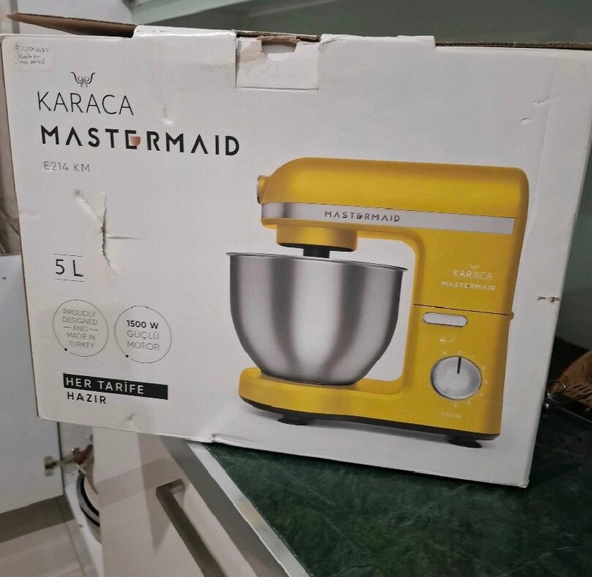 Bir defa denemek için kullandı annem anlamadığı için satıyor Sarı Karaca Mastermaid mutfak robotu, güçlü 1500W motor ve paslanmaz çelik karıştırma kabı ile etkili karışım sağlar.