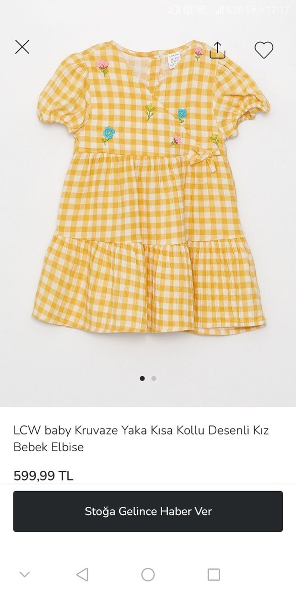 Sarı Kareli Kısa Kollu Bebek Elbise