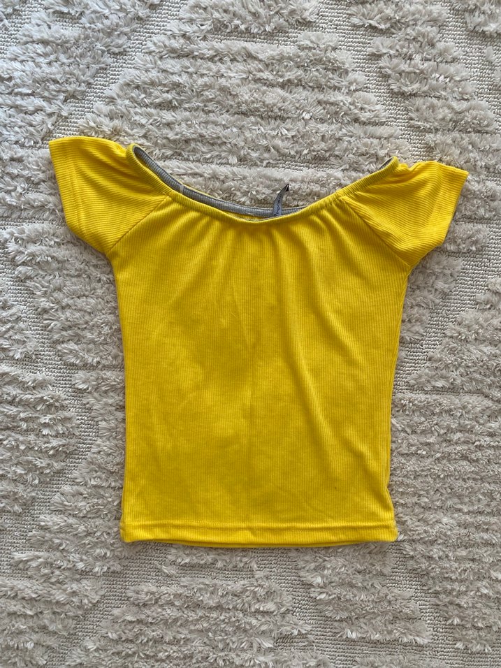 Sadece 1 kere giyildi çok iyi durumda crop ve üste yapışıktır. Kayık yaka ve kısa kollu, yumuşak sentetik kumaştan yapılmış sarı renkli, basic ve sade. #kayıkyaka #crop