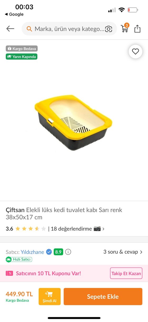 Temizliği kolay, havalandırmalı iç ızgaraya sahip açık sarı kedi tuvalet kabı. Yaklaşık 2 hafta kadar kullanıldı. Konforlu ve kullanışlı. Ufak kırığı var en sona bıraktım görseli kullanıma engel değil o yüzden uygun fiyata bıraktım. Ölçüleri ilk görselde mevcut İade yoktur
