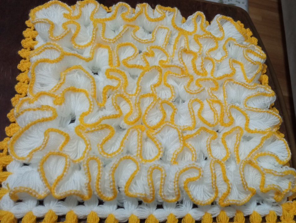 Sarı kenarlı renkli banyo süngeri, nazik temizleme ve peeling için tasarlanmıştır. Yumuşak ve dokulu yapıya sahiptir.