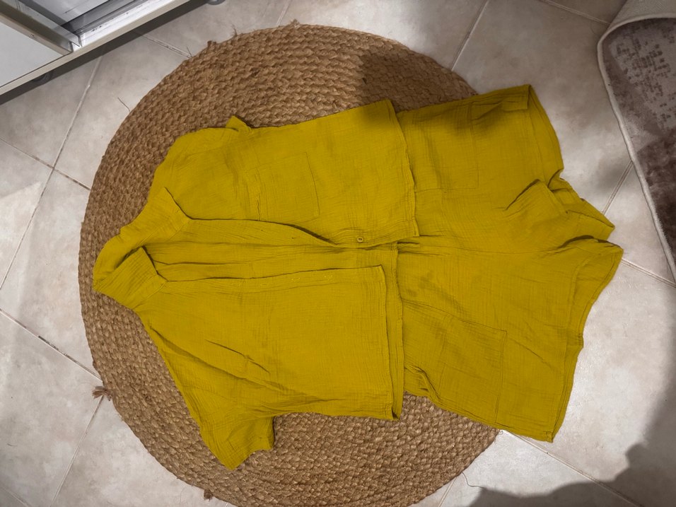 Sarı Keten Kadın Mini şortlu müslin takım