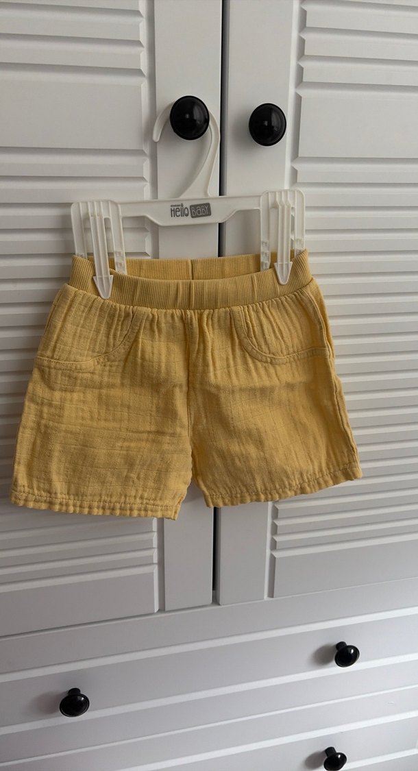 Sarı Keten kız bebek Mini Şort