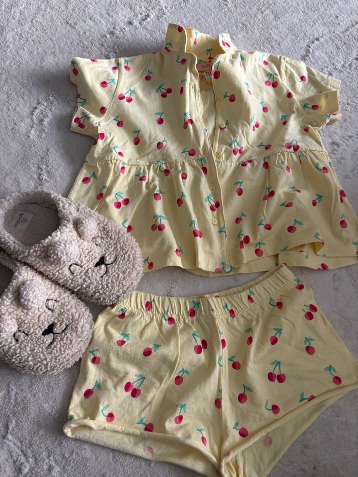 Sarı Kiraz Desenli Kısa Kollu çocuk pijama
