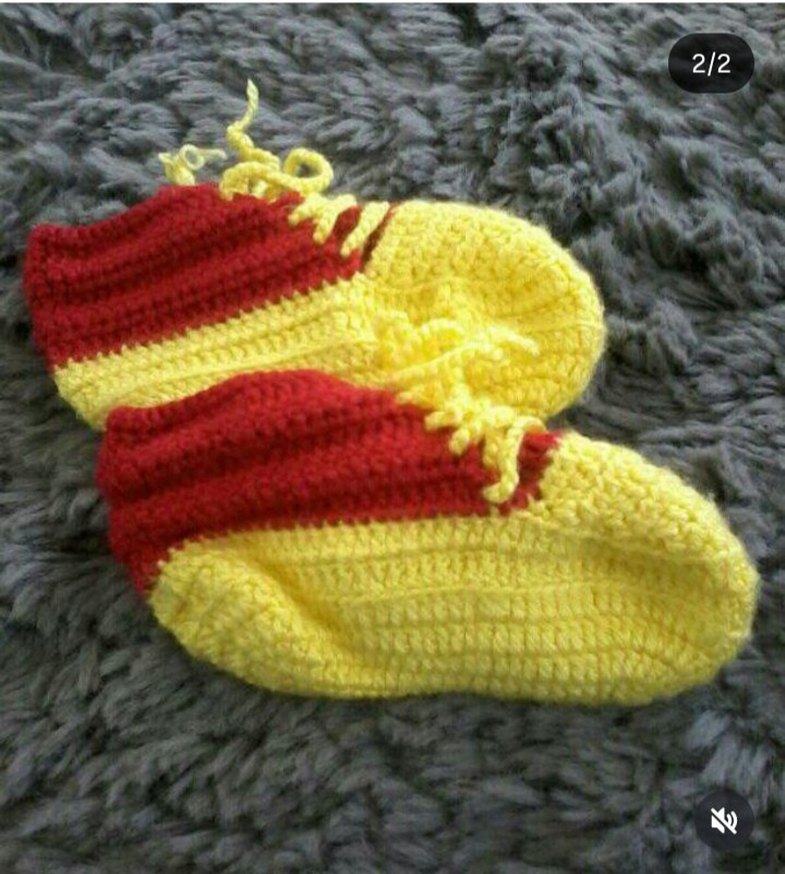 Sarı Kırmızı Erkek Bebek Örgü Patik