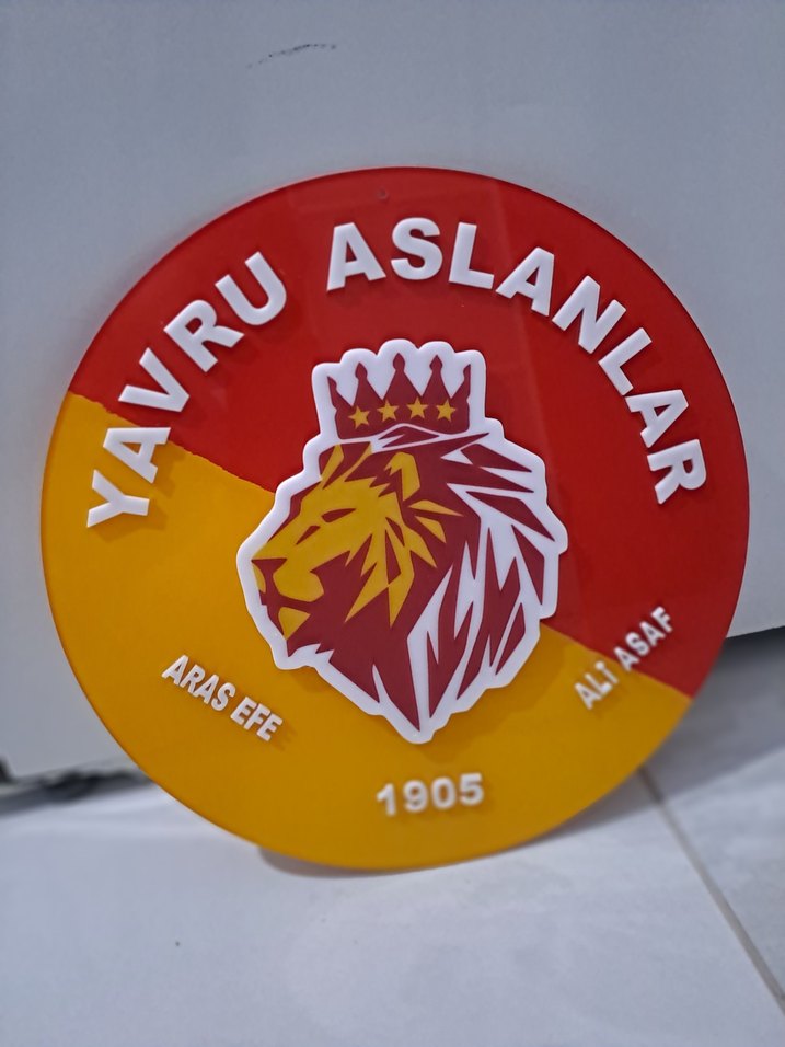 Kırmızı ve sarı renklerde, taçlı aslan figürlü ve "Yavru Aslanlar" yazılı renkli erkek rozeti. kişiye özel tasarlanir