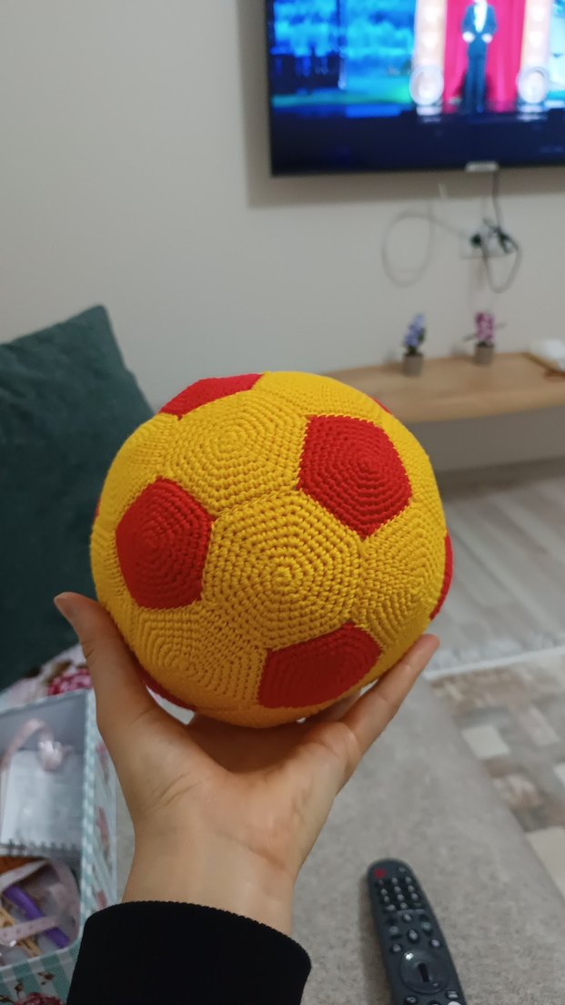 Amigurimi sarı ve kırmızı renklerde örgü top ( istenilen renkte sipariş alınır)
