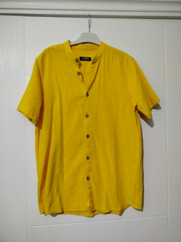 Sarı kısa kollu keten gömlek, yakalı ve düğmeli. Rahat kesimi ve parlak görünümüyle trend sokak stili için uygundur. geri iade yoktur ürünlerimde almicaksaniz boş teklif vermeyin lütfen diğer ilanlarimada bakın bence teklifleri kabul ediyorum genelde ✋