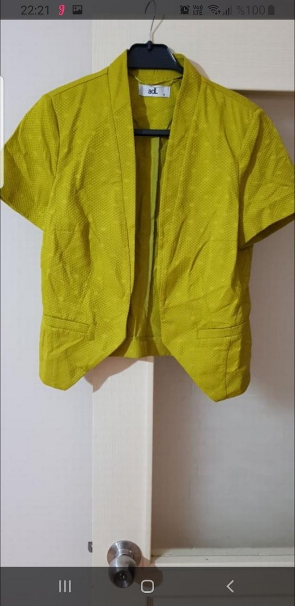 Sarı renkli, kısa kollu kadın blazer. normal kesimGünlük kullanım için uygun.