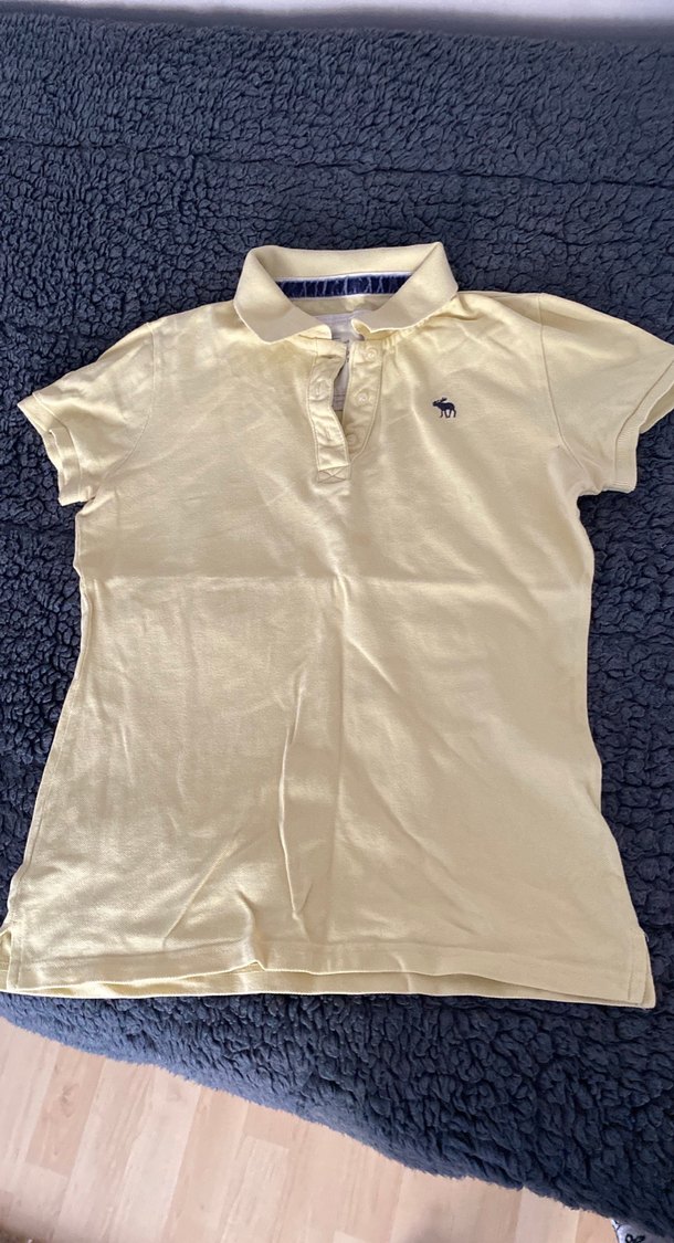 Sarı kısa kollu kız polo tişört, yakalı ve düğmeli ön detaylıdır. Yumuşak pamuktan üretilmiş, dar kesim ve günlük sokak stili için uygundur.