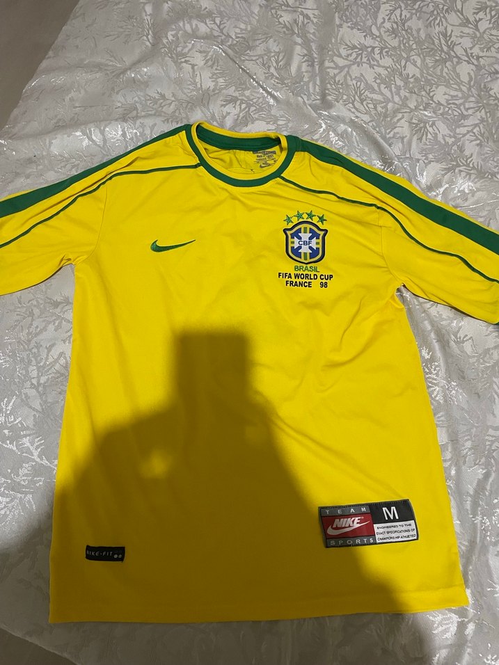 Sarı kısa kollu Nike Brasil futbol forması, yuvarlak yakalı ve düğmeli detaylı. Spor ve günlük kullanıma uygun, hafif yapıda. ⚽️