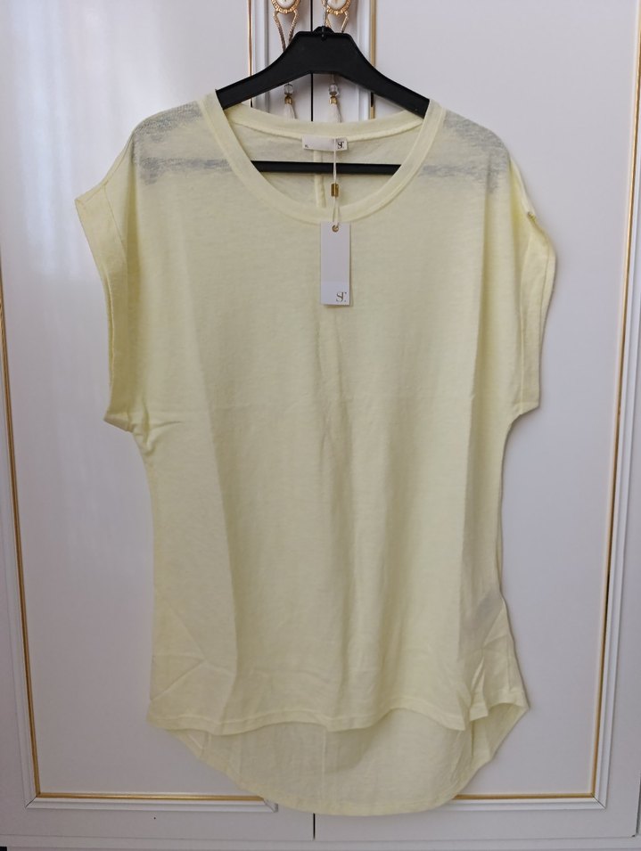 Salaş kesim, kısa kollu, yuvarlak yakalı sarı tişört, günlük rahat