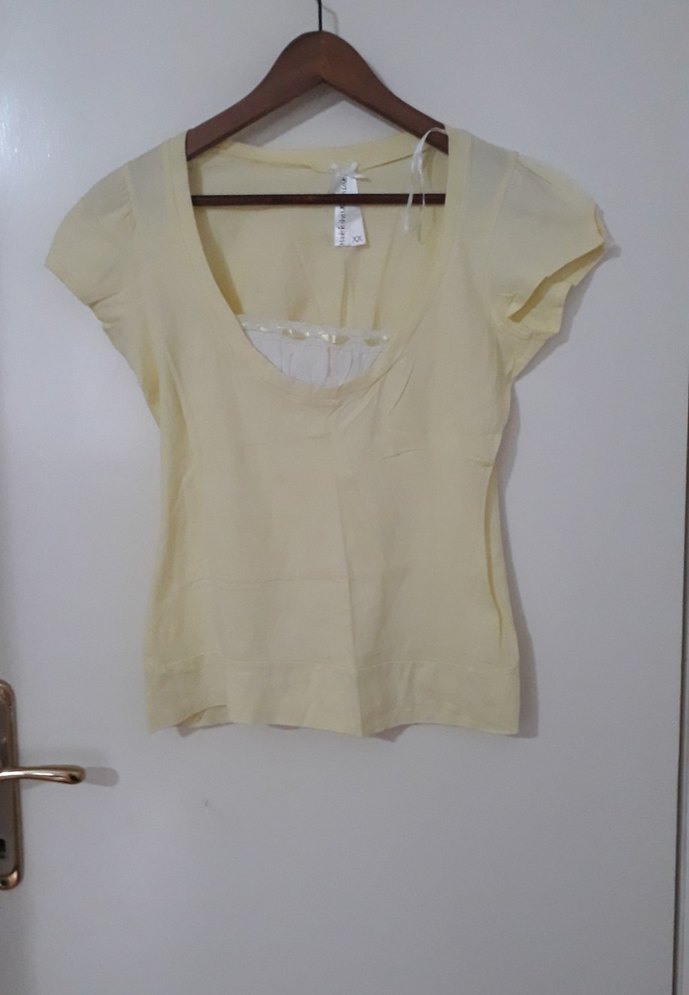 sari Kısa Kollu V Yaka Mini Bluz y2k
