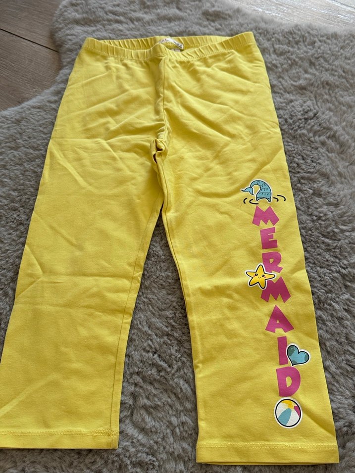 Yumuşak ve sıcak kumaştan yapılmış, renkli denizkızı baskılı, fermuarlı sarı kız çocuk taytı. ♀️