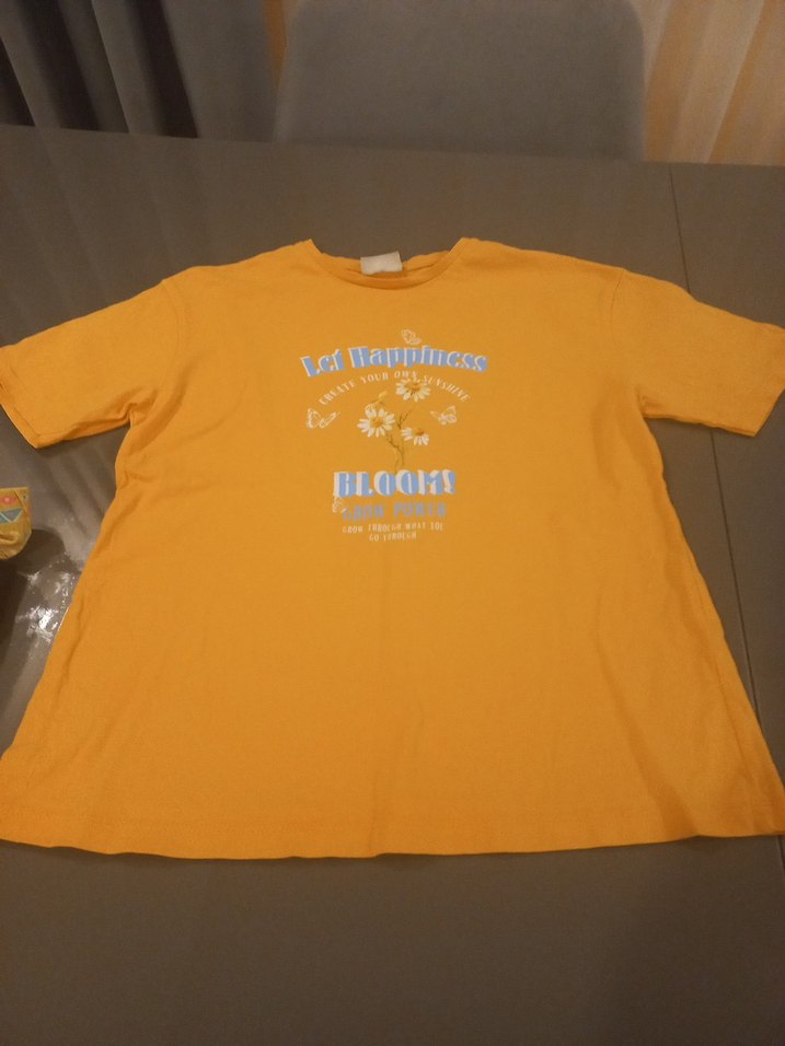 9 10 yas kız çocuk 3 parca elimde kalan ürünler Sarı renkli, baskılı, kısa kollu, yuvarlak yaka ve bol kesim kız çocuk tişörtü #tişört #tayt #pantolon #lcwakiki