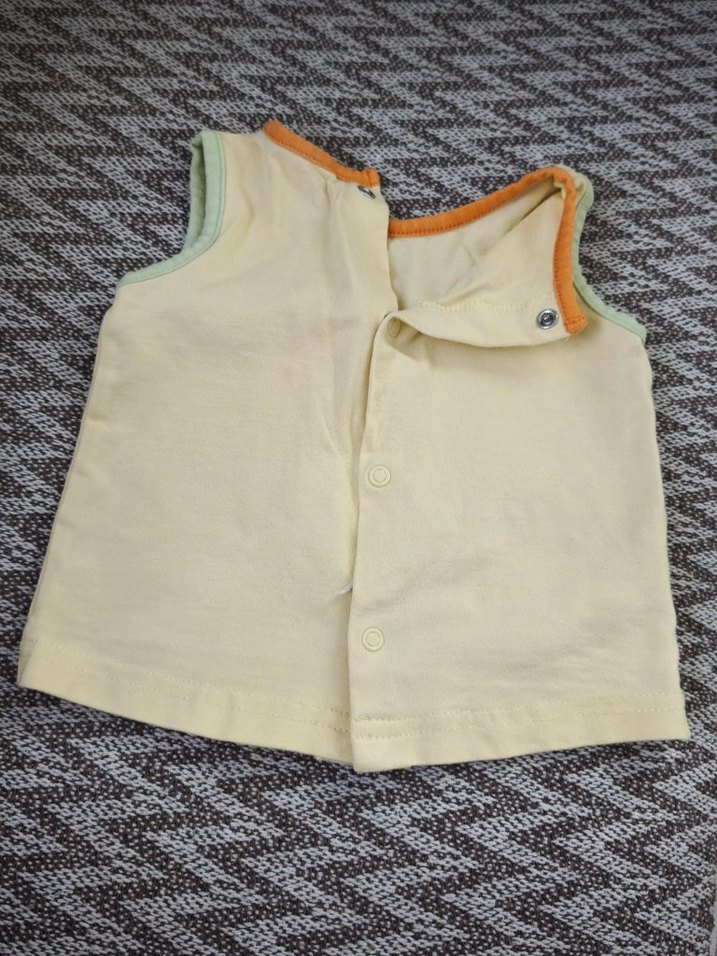Sarı renkte, düğmeli, kolsuz kız çocuk yeleği. Pamuklu kumaştan, salaş kesim ve yuvarlak yaka ile sokak stiline uygun sade tasarım.