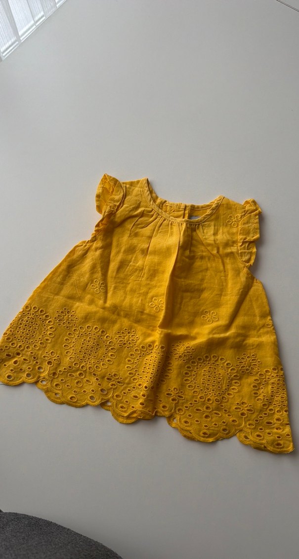 Sarı Kız Çocuk Fırfırlı Keten Elbise 6-9 ay kız bebek elbise