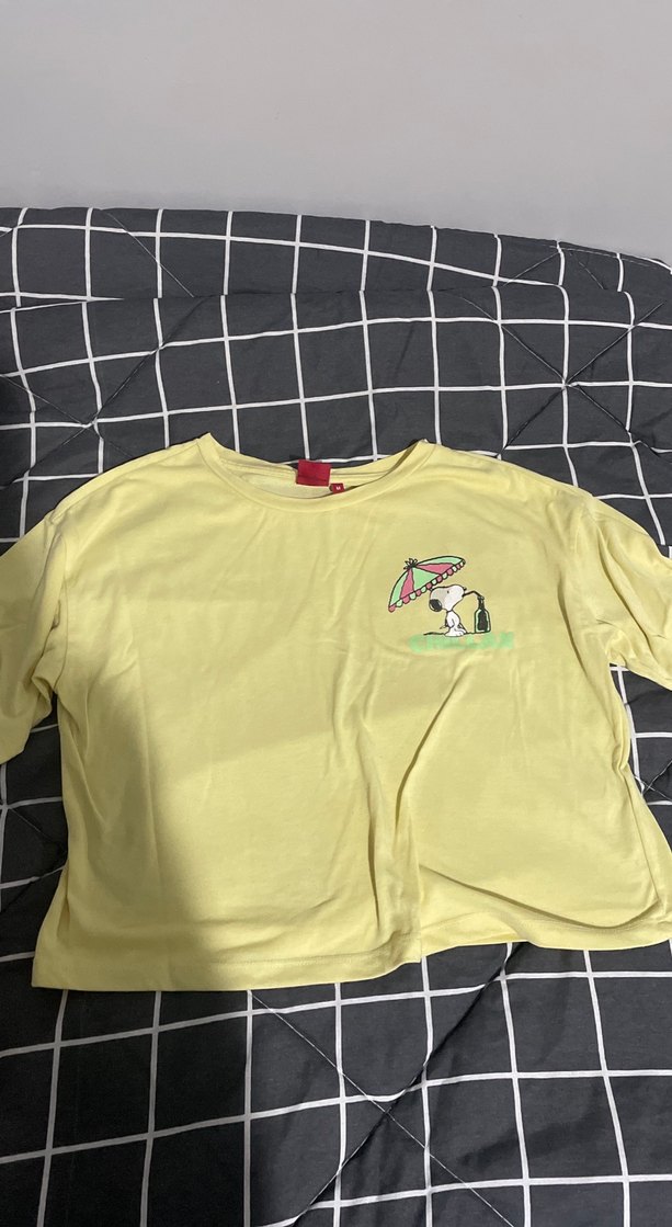 Pamuk kumaştan yapılmış, kısa kollu, yuvarlak yakalı ve bol kesim sarı kız çocuk tişörtü. Pastel tonlarda, küçük baskılı desenle rahat ve şık bir günlük model.