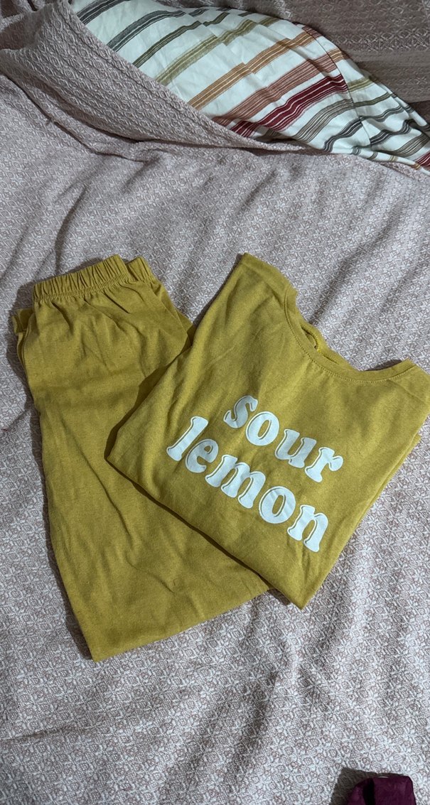Kız çocukları için sarı, salaş kesim, kısa kollu ve bisiklet yaka takımdır. Yumuşak keten kumaştan, üzerine "sour lemon" baskısı yapılmıştır.