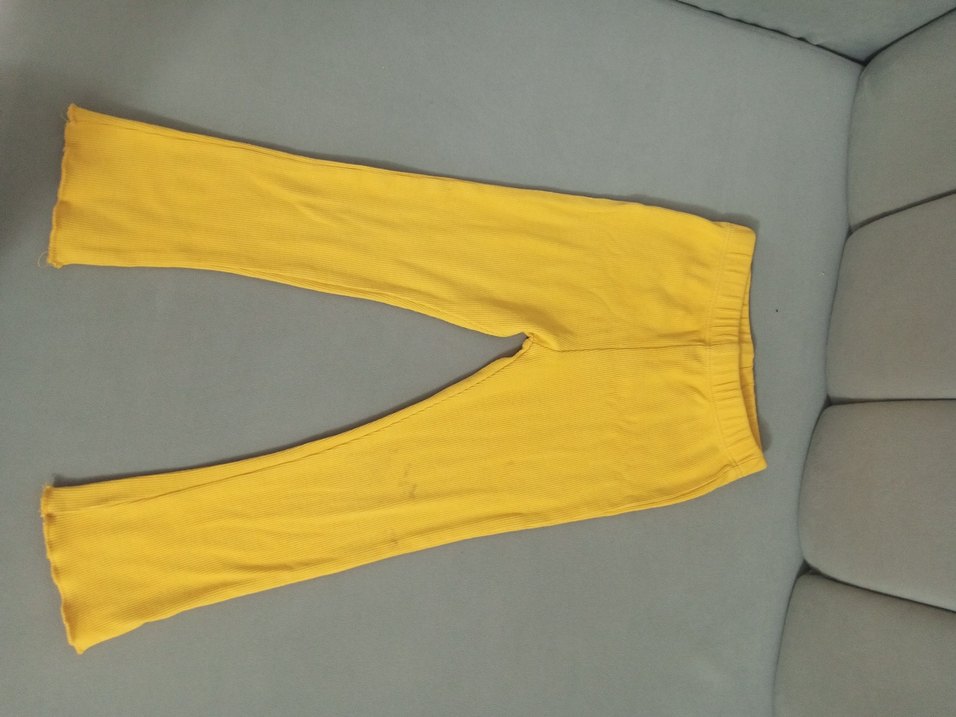 Esnek sentetik kumaştan yapılmış, elastik bel bantlı sarı kız çocuk taytı. Sokak giyimi tarzına uygun, dar kesim.
