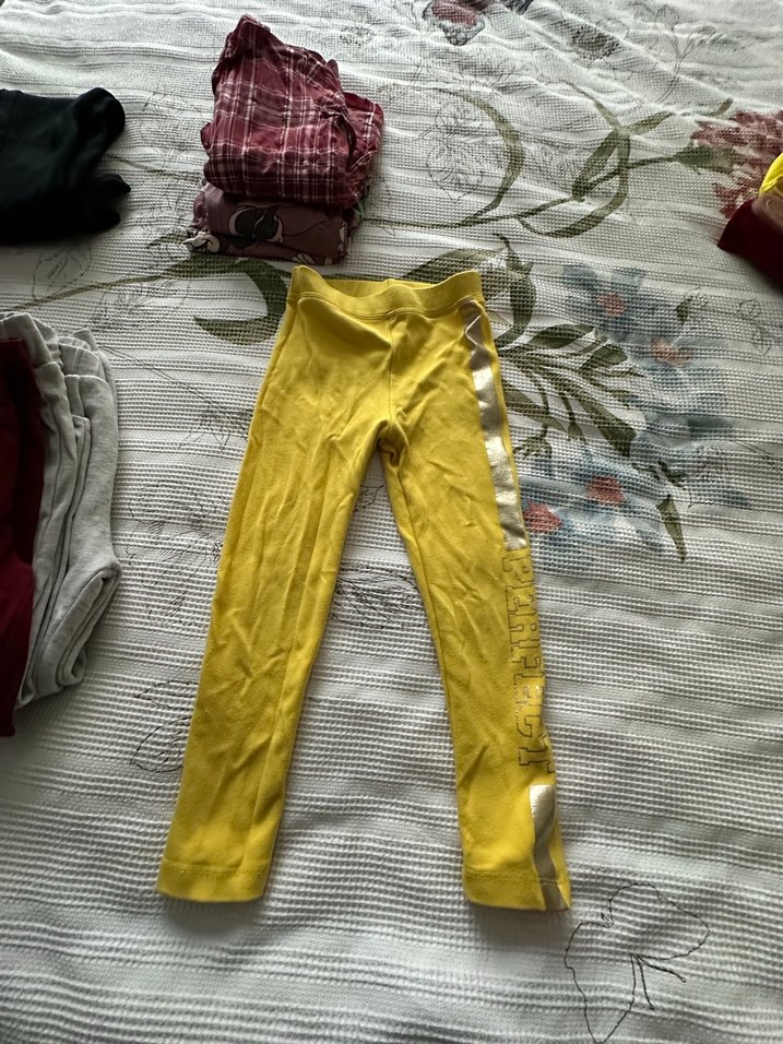 Sarı renkli, elastik bel bantlı kız çocuk taytı, yumuşak sentetik kumaştan üretilmiş ve sokak stiline uygun.