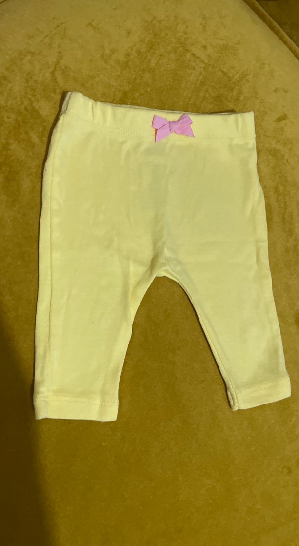Sarı renkli, yumuşak ve sıcak kumaştan yapılmış, belinde küçük pembe fiyonk detaylı, düz tasarımlı kız çocuk taytıdır. Sokak stiline uygundur.