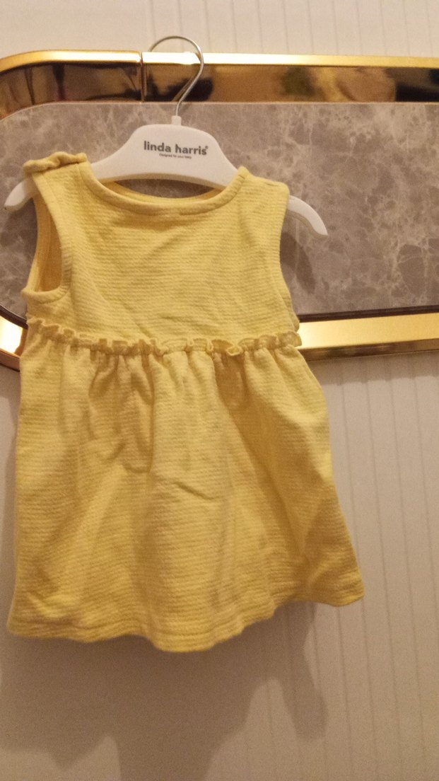 Sarı , kolsuz ve bol kesimli kız elbisesi. Bel kısmında fırfır detaylı, yuvarlak yakalı ve sade tasarımlı. hic kullanmadim etiket yok elimde iki adet var ikizleriniz varsa cok guzel yakisir